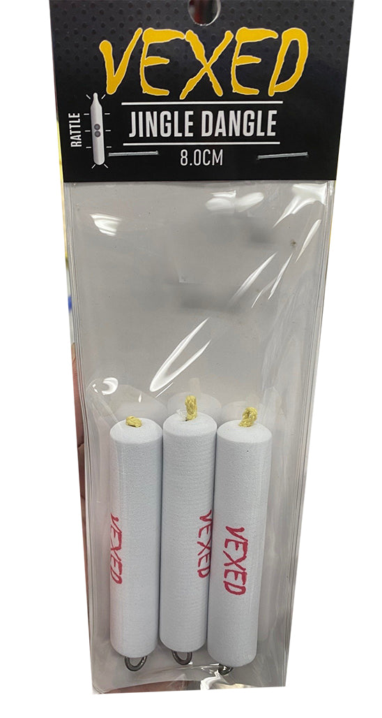The Vexed Jingle Dangle 3 Pack features a flotation core designed to elevate your bait off the bottom, enhancing its visibility and reducing interference from stingrays and crabs. Each unit includes a glass rattle that adds an enticing sound to attract fish, making it an essential tool for anglers seeking improved bait presentation and increased catch potential.